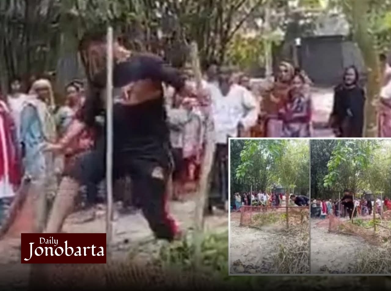ছড়িয়ে পড়া ৪৮ সেকেন্ডের ভিডিওতে দেখা যায়, বাড়ির পাশে কবরের চারপাশে বাঁশের খুঁটি ও প্লাস্টিকের জাল দিয়ে ঘেরা। কালো প্যান্ট ও ফুলহাতা গেঞ্জি পরা এক যুবক কখনো লাঠি দিয়ে, কখনো লাথি মেরে কবরের বেড়া ভাঙচুর করছেন। গালিগালাজ করার শব্দ শোনা যাচ্ছিল। কবরের বেড়া ভাঙচুর করে তছনছ করার পর তিনি শান্ত হন।