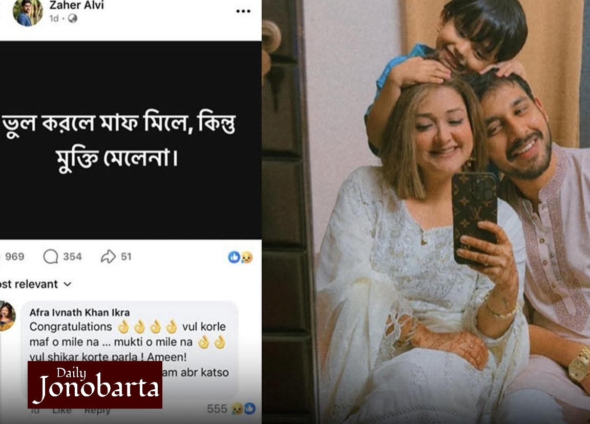 শোনা যাচ্ছে, দাম্পত্য জীবনে তাদের মনোমালিন্য চলছিল। ঘটনার এক দিন আগে নিজের ফেসবুকে একটি পোস্ট করেছিলেন জাহের আলভী। সেখানে তিনি লিখেছিলেন, ‘ভুল করলে মাফ মেলে, কিন্তু মুক্তি মেলে না।’