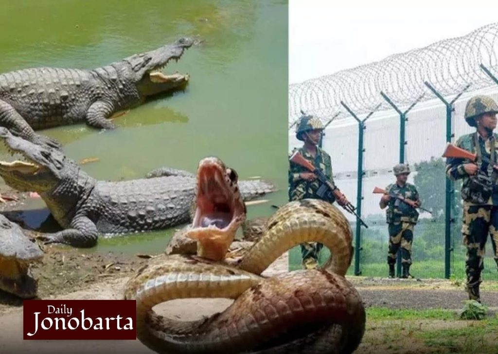 গত ২৬ মার্চ বিএসএফ-এর ইস্টার্ন এবং নর্থ-ইস্টার্ন সেক্টর সদর দপ্তরে পাঠানো এক গোপন বার্তায় বলা হয়েছে, যেসব নদীপথ বা পাহাড়ি ছড়ায় কাঁটাতারের বেড়া দেওয়া সম্ভব নয়, সেখানে অপারেশনাল প্রয়োজনে সাপ বা কুমির মোতায়েন করা যায় কি না, তা খতিয়ে দেখতে।