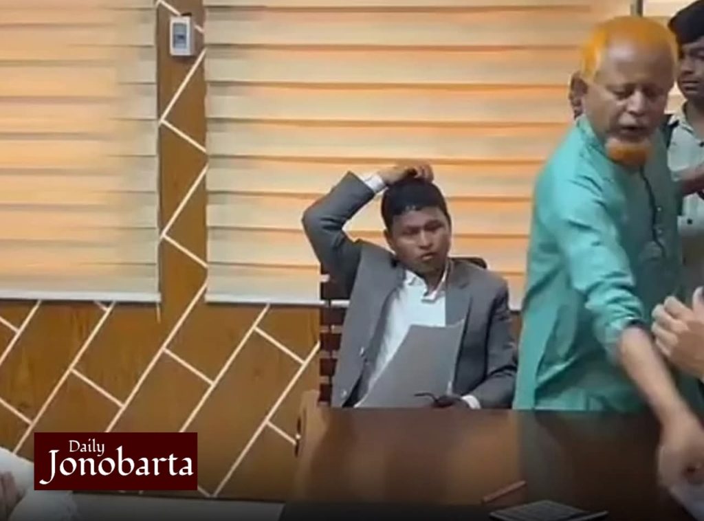 সামাজিক যোগাযোগমাধ্যমে ছড়িয়ে পড়া ভিডিওতে দেখা যায়, বাগ্বিতণ্ডার সময় জামাল উদ্দিন ইউএনওকে নিয়োগ বাণিজ্যের অভিযোগ করেন। এ সময় ইউএনও বলেন, ‘রাতের বেলায় আমি অফিস করব, সেটা আমার বিষয়। আমাদের অফিস ২৪ ঘণ্টা খোলা থাকে।’ পাল্টা জবাবে জামাল উদ্দিন বলেন, ‘আপনি আওয়ামী লীগের ফ্যাসিস্টদের নিয়োগ দেবেন, এটা মানা হবে না।’