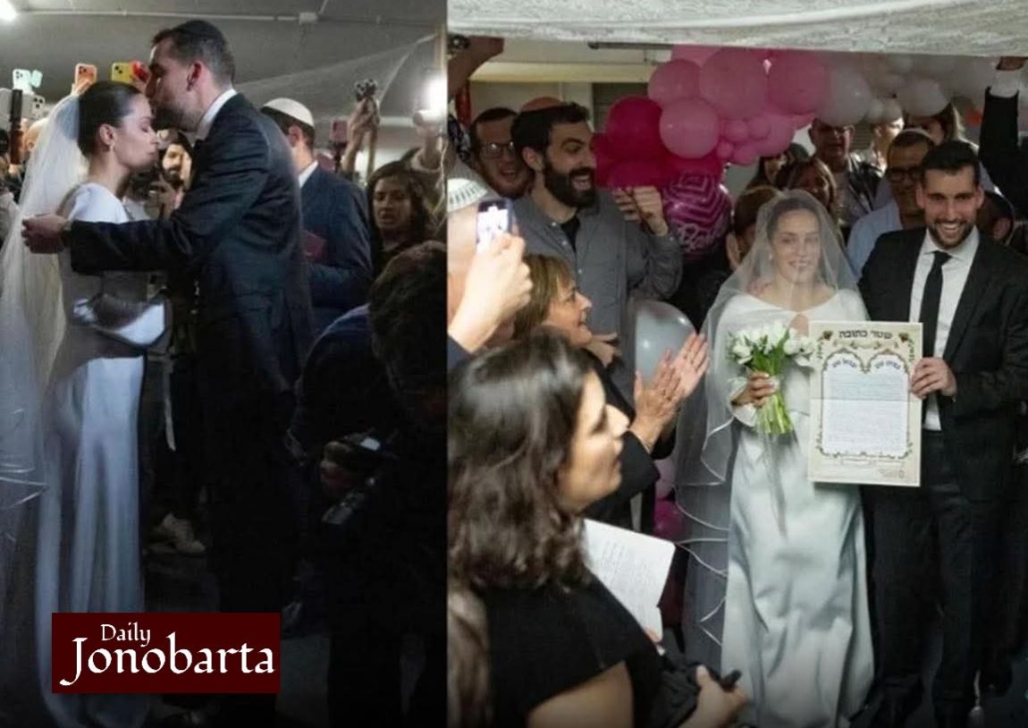 পরে মঙ্গলবার নবদম্পতি বিয়ের আনন্দে মেতে থাকাকালীন তেল আবিবে কয়েকবার সাইরেন বাজলেও, ভূগর্ভস্থ আশ্রয়কেন্দ্রে নিরাপদে উদযাপন চালিয়ে যান তারা।