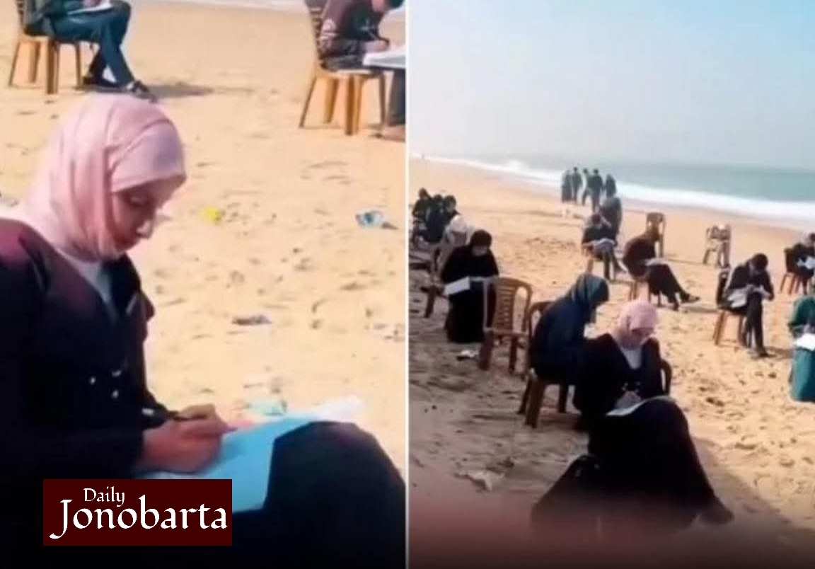 প্রায় আড়াই বছর ধরে গাজায় ইসরাইলি আগ্রাসন চলছে। হামলার মুখে সব ধরনের স্কুল কলেজের স্থাপনাও ধ্বংস হয়ে গেছে। তবে এমন পরিস্থিতিতেও গাজার শিক্ষাব্যবস্থা ধসে পড়েনি। তার নজির মিলল এবার, সাগরতীরে বসে পরীক্ষা দিচ্ছেন শিক্ষার্থীরা। সামাজিক মাধ্যমে সম্প্রতি একটি ভিডিও দ্রুত ছড়িয়ে পড়েছে। সেখানে দেখা যাচ্ছে, গাজার শিক্ষার্থীরা সমুদ্র সৈকতে বসে পরীক্ষা দিচ্ছে। ইসরাইল গাজার শত শত স্কুল ও বিশ্ববিদ্যালয় ধ্বংস করে দেওয়ার পর এই দৃশ্য সবার মনে গভীর ছাপ ফেলেছে।